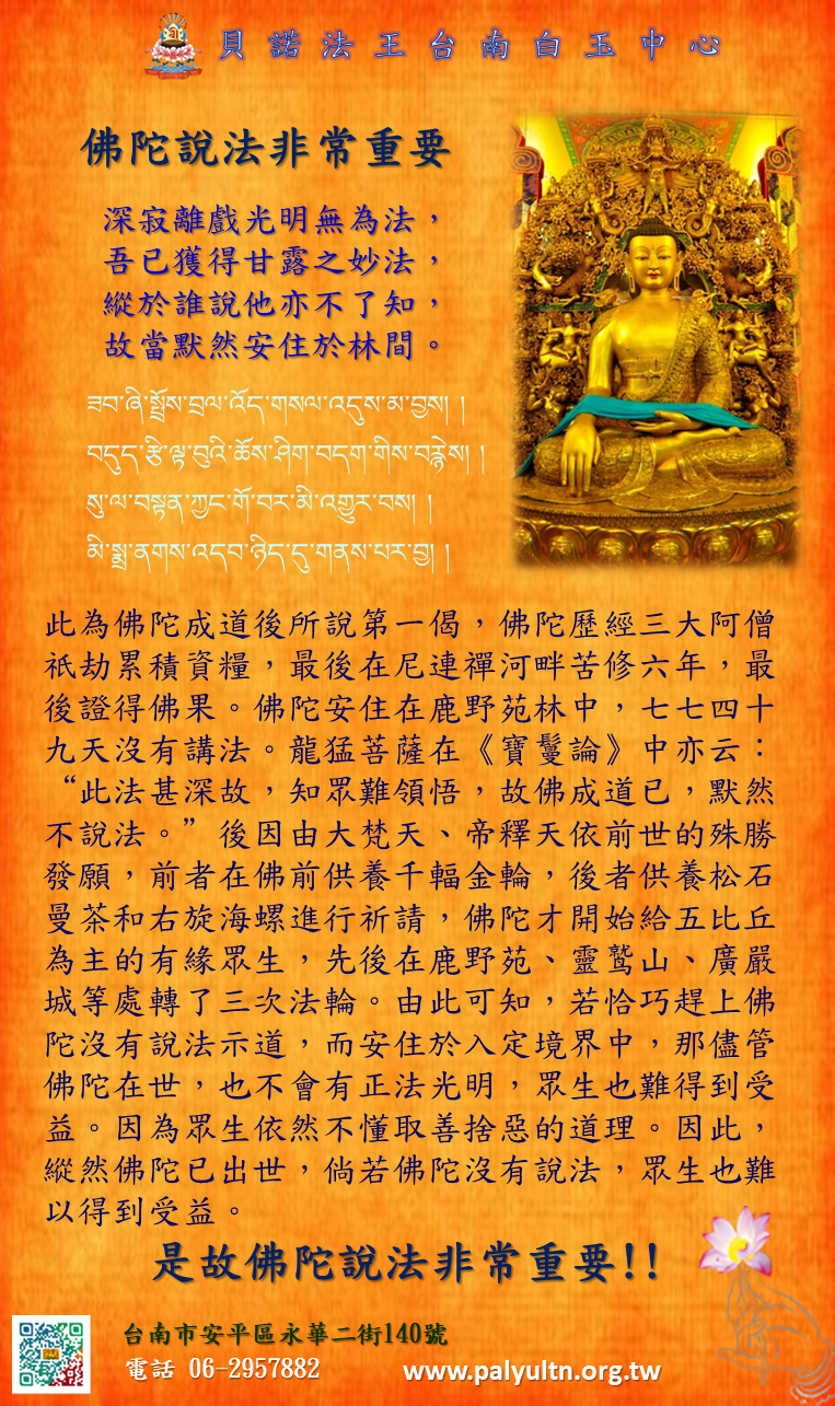 地址:台南市安平區永華二街140號 電話:06-2957882~3 傳真:06-2957894 E-mail:palyultn@gmail.com 常駐上師:索南多傑仁波切 0919557680