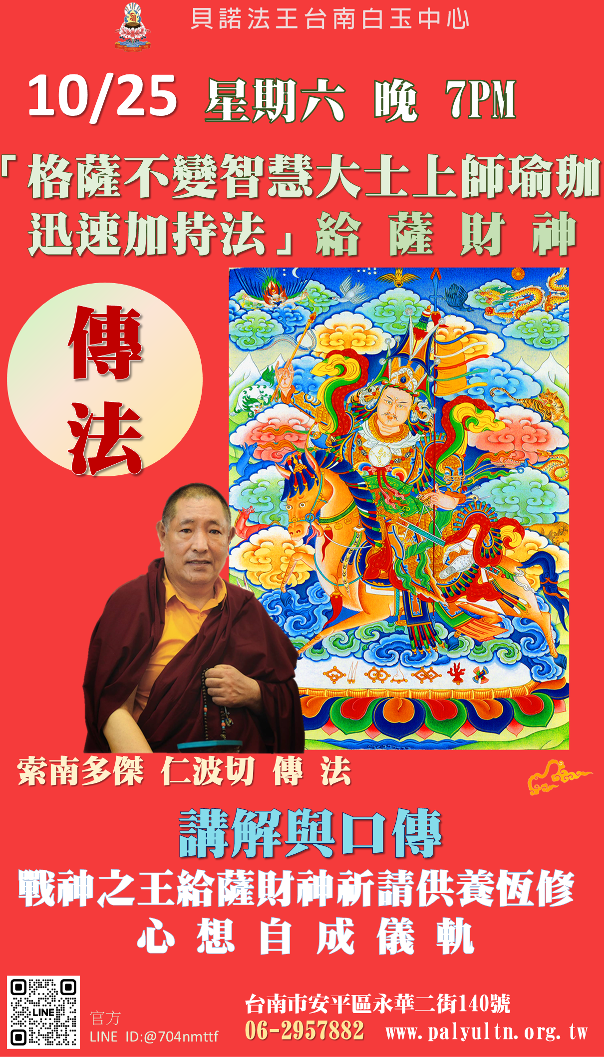 10/25星期六晚7pm 格薩不變智慧大士上師瑜珈 迅速加持法~給薩財神傳法與講解