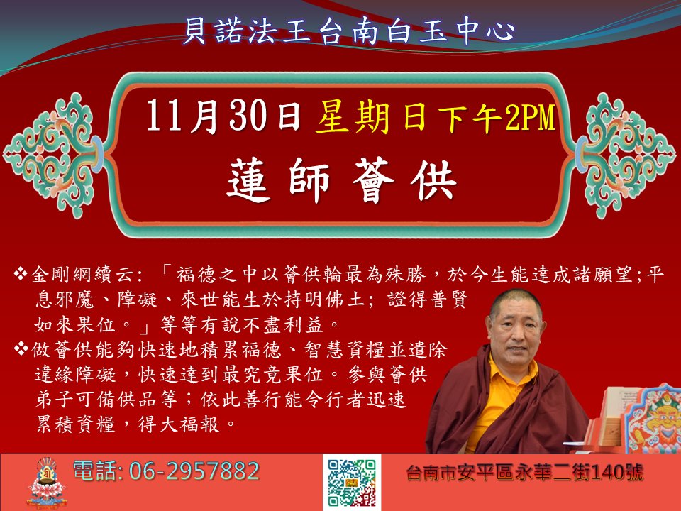 11月30日星期日下午2點 蓮師薈供 敬邀蒞臨